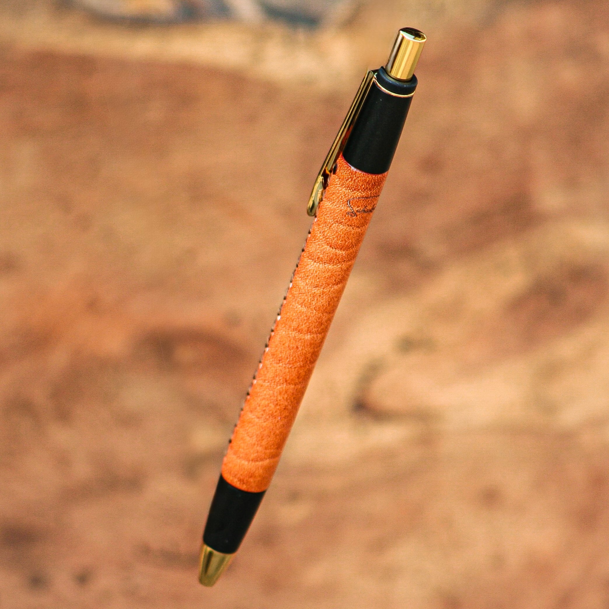 ★不定期販売★ 革軸ペン 【特上ヌメ革節目模様 オレンジ】