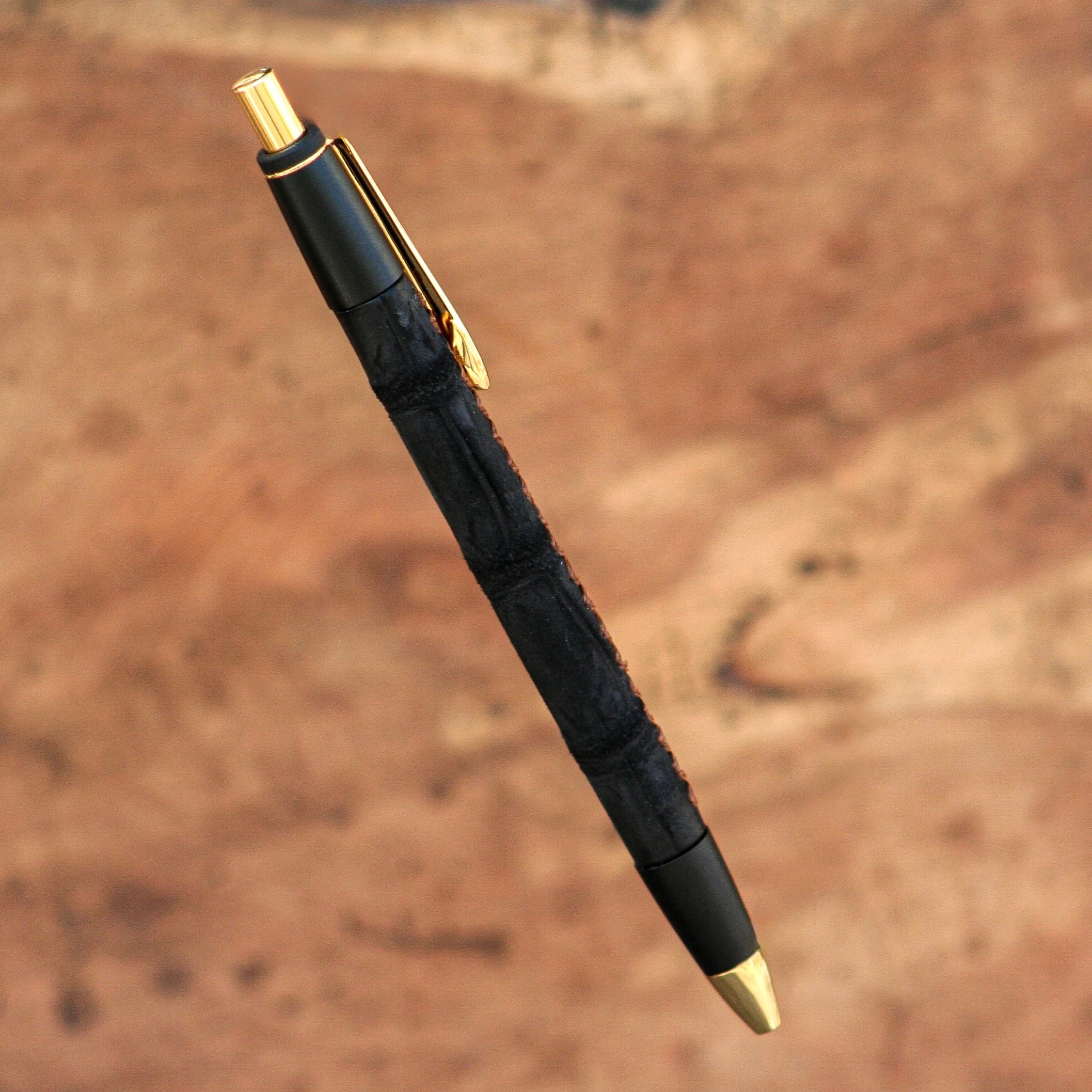 ★不定期販売★ 革軸ペン【クロコダイル ヌバック ブラック】