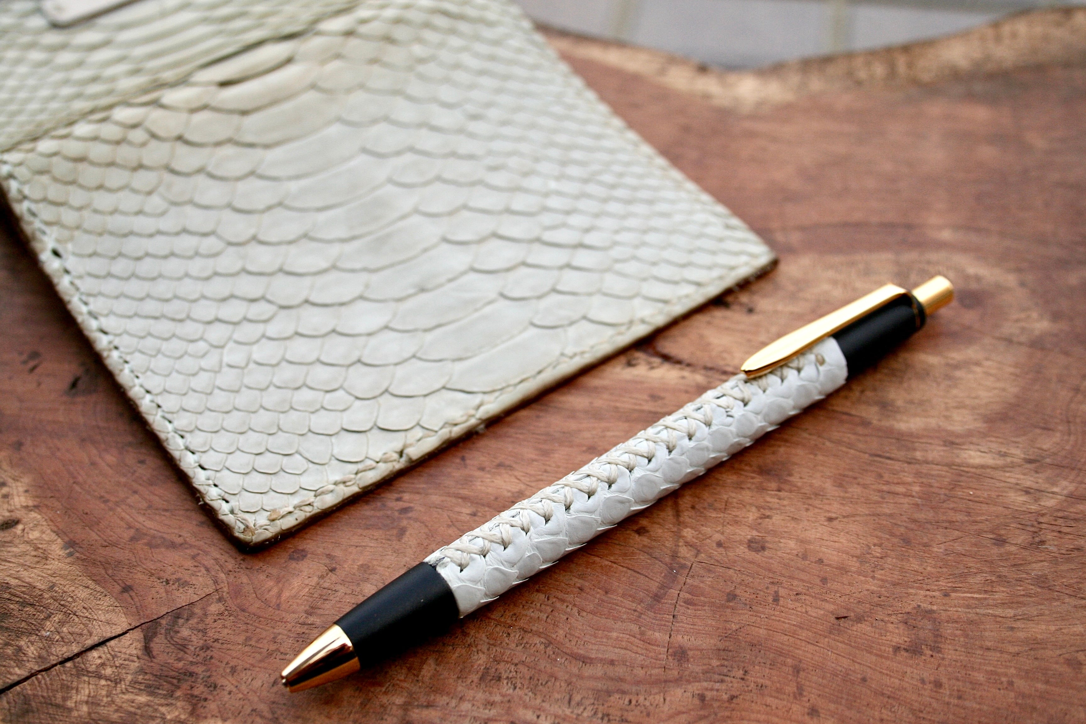 ラスト販売 ★巳年限定★ 革軸ペン【パイソンレザー(白蛇革)】