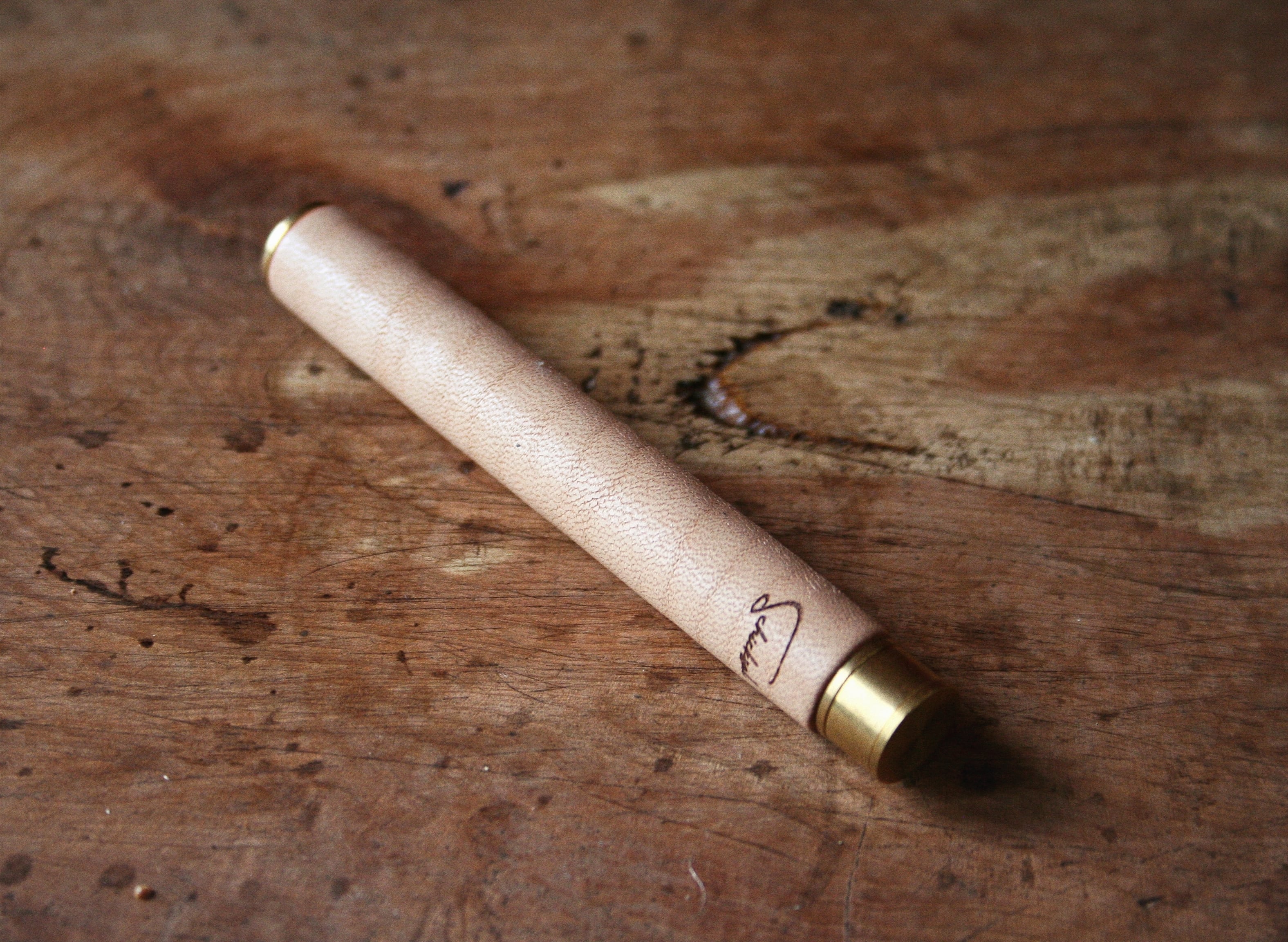 ★不定期販売★ 業界初! 硬度表示窓付き革軸芯ケース 【特上ヌメ革節目模様 ナチュラル】