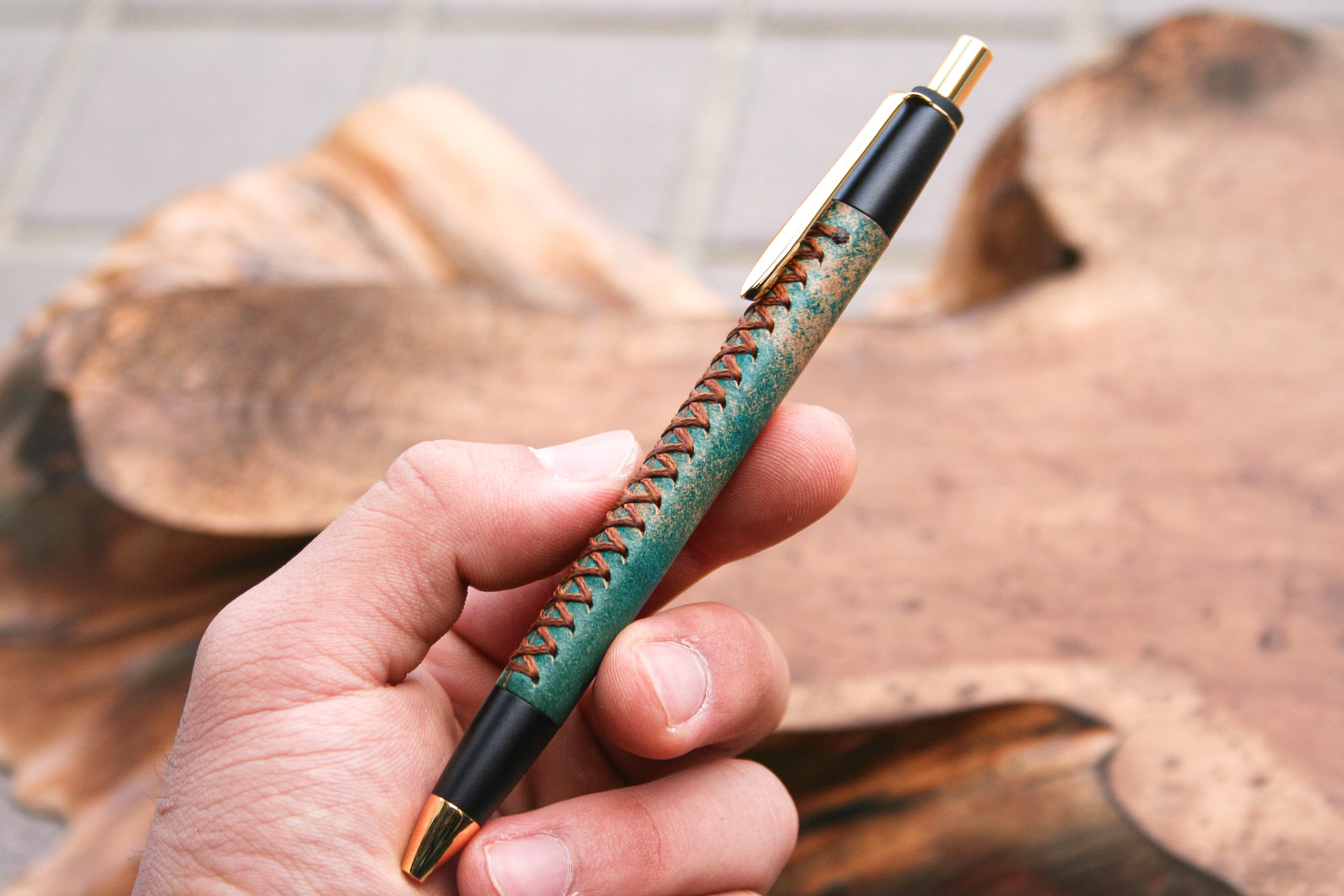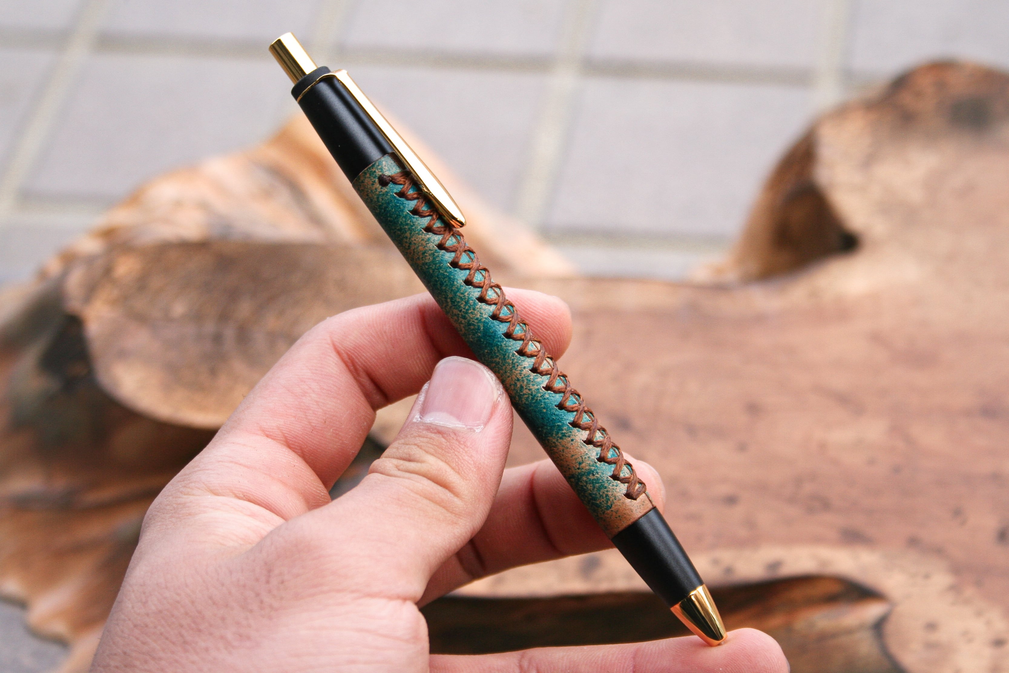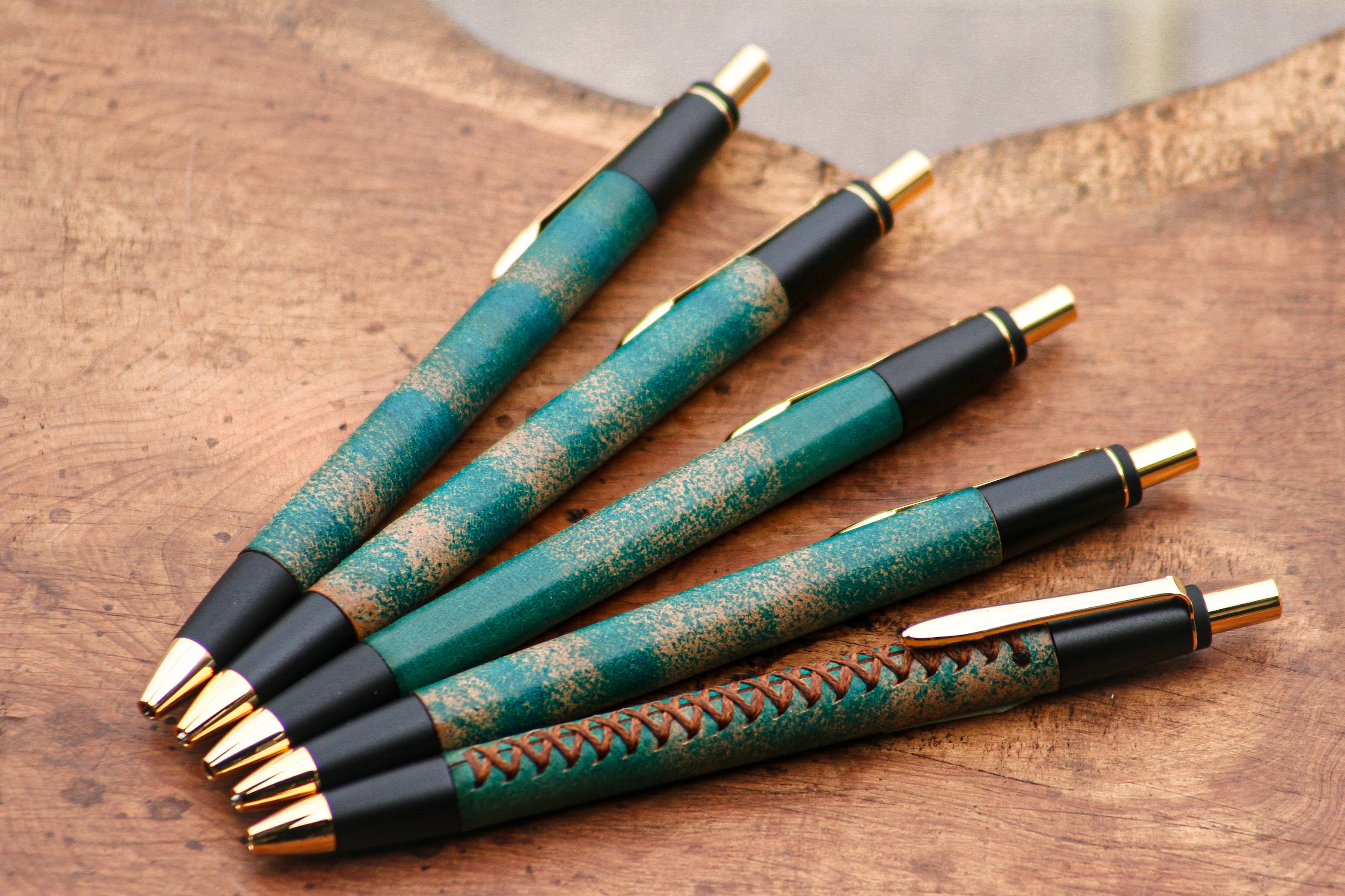革軸ペン【 ROCADO シェルコードバン MARBLED (ターコイズ ) 】