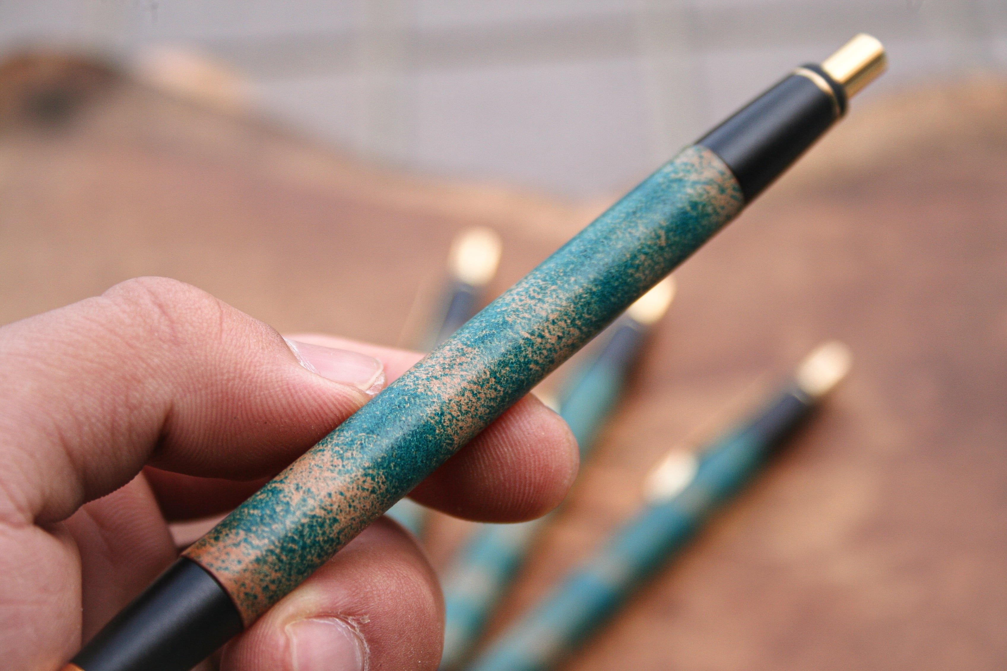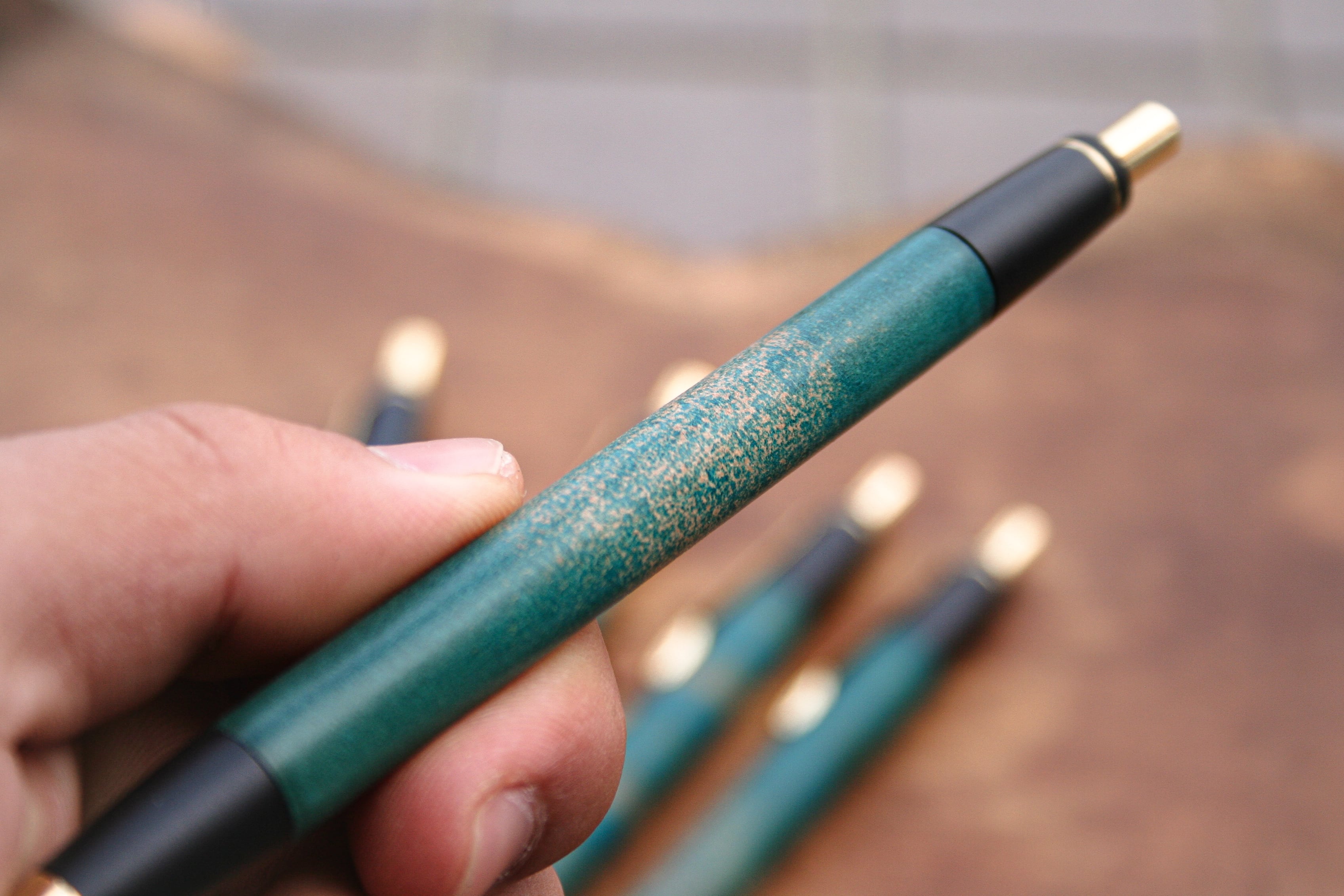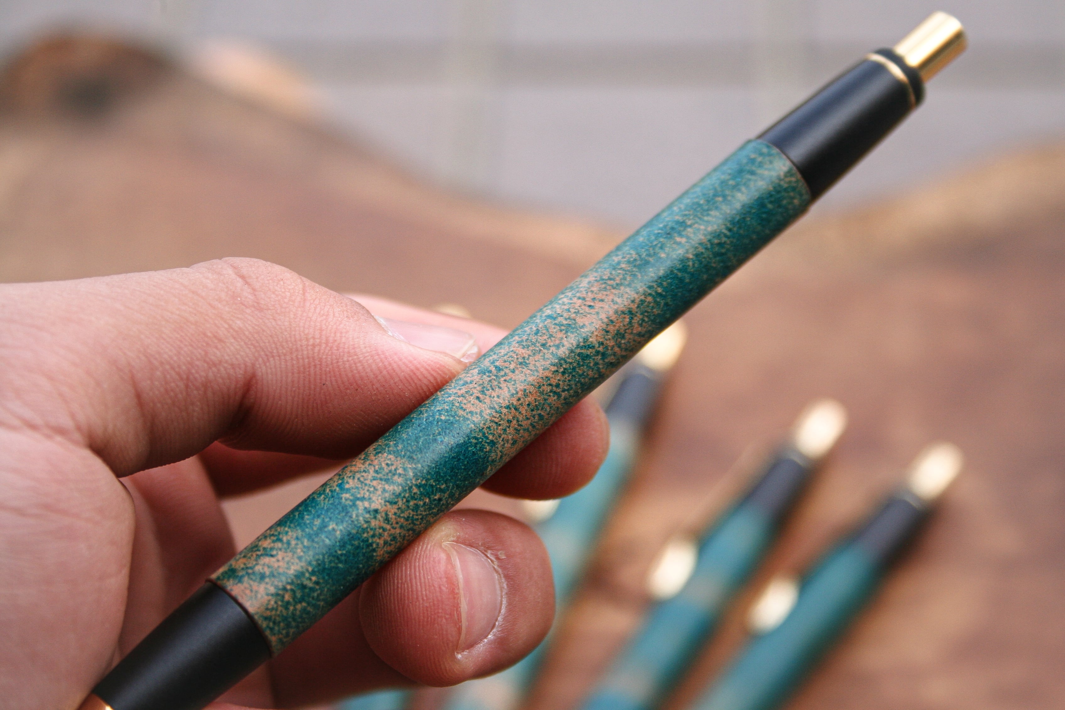 革軸ペン【 ROCADO シェルコードバン MARBLED (ターコイズ ) 】
